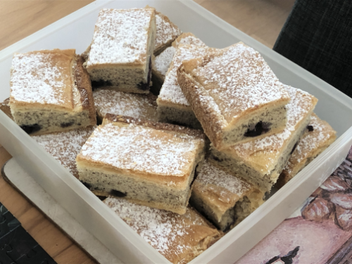 zweiten Blätterteig ausbreiten und auf Masse legen (Papier oben!)