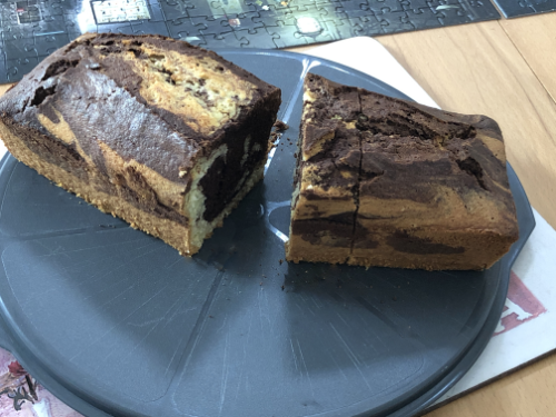 Teig in Backform und mit Gabel spiralförig durch den Teig gehen